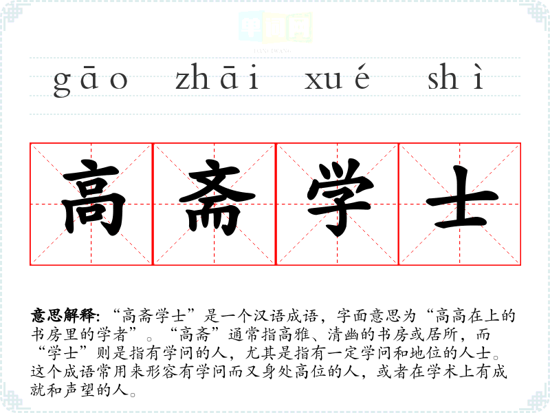 - 这位高斋学士不仅有深厚的学问,还很谦逊,值得我们学*。