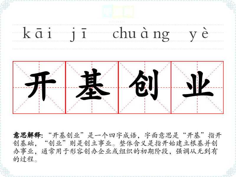 | 开基创业 | 指开创帝业。 |