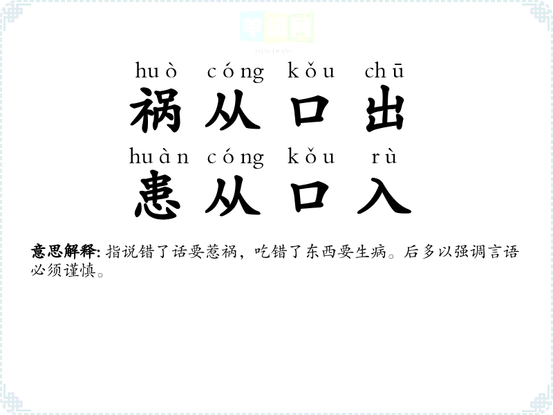 | 不为福先,不为祸始 | 先:先驱者,带头人;始:创始者。不做为人民造福的先驱者,也不做祸害人类的创始人。 |