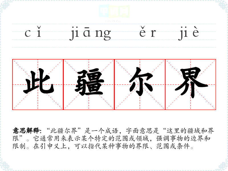 通过对“此疆尔界”的学,我深刻理解了界限在生活、工作和人际关系中的重要性。这个成语不仅丰富了我的语言表达,也让我在日常生活中更加关注和尊重各种界限。在语言学中,它提醒我关注语境和表达的准确性,使我的交流更加有效。