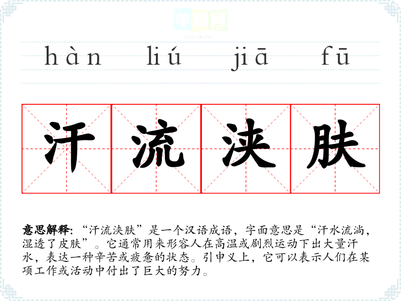 “汗流浃肤”常常让我联想到劳作的艰辛与收获的喜悦。它带有一种奋斗的情感,激励我在面对困难时不轻言放弃,努力去完成目标。