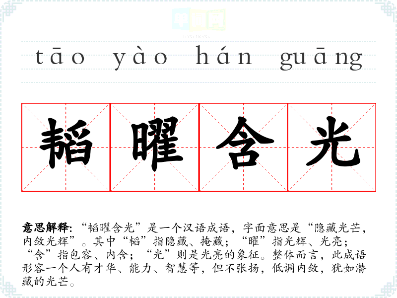 | 韬光养晦 | 指隐藏才能,不使外露。 |
