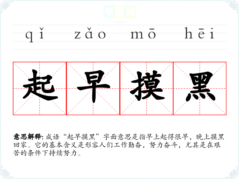 | 起早摸黑 | 起早睡晚,指辛勤劳动。 |