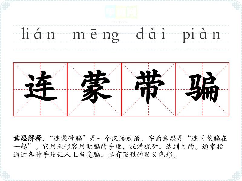 | 连蒙带骗 | 欺蒙,欺骗别人。 |