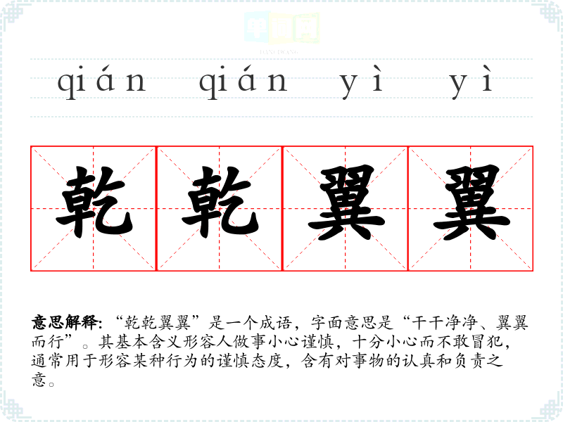 | 乾乾翼翼 | 指勤勉敬慎。 |