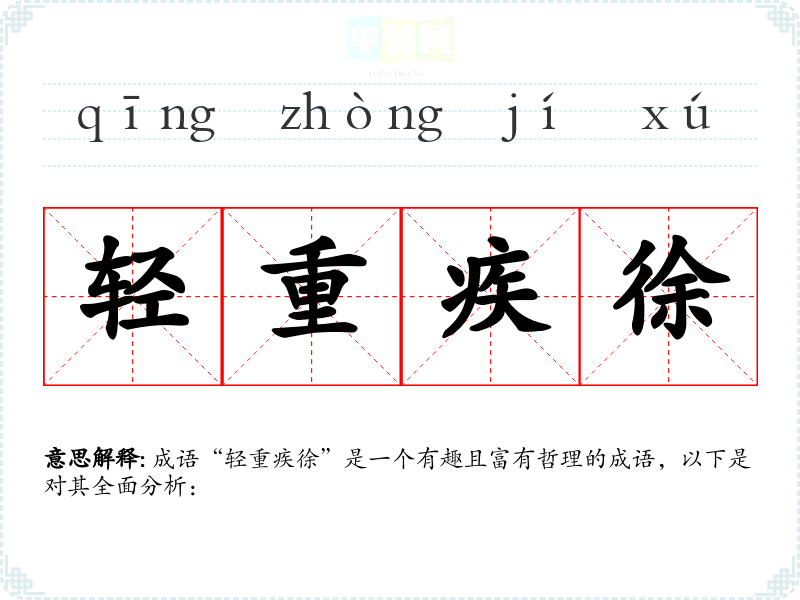 成语“轻重疾徐”是一个有趣且富有哲理的成语,以下是对其全面分析: