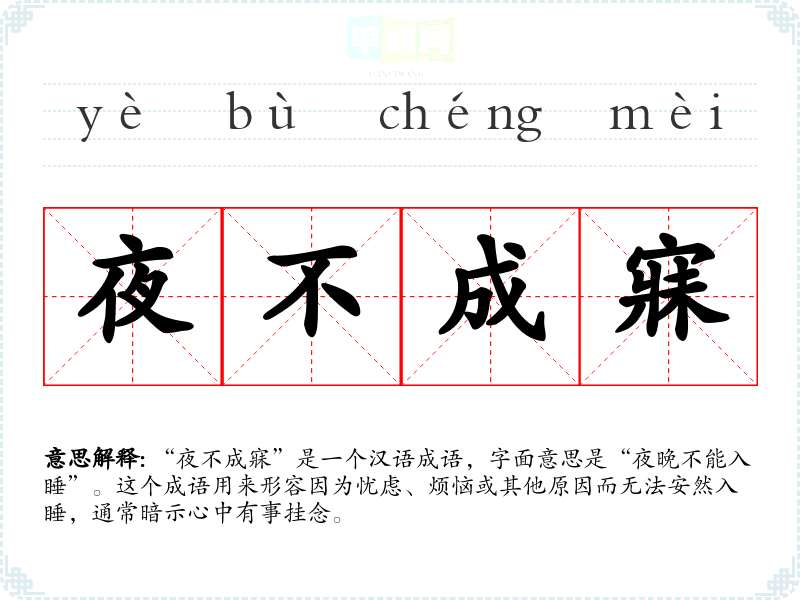 在我个人的生活中,有过因学业压力而夜不成寐的经历。每当临近考试,总是会因为担心成绩而失眠,深刻体会到这个成语所传达的情感。后来我学会了调整心态,尝试放松自己,以此改善睡眠。
