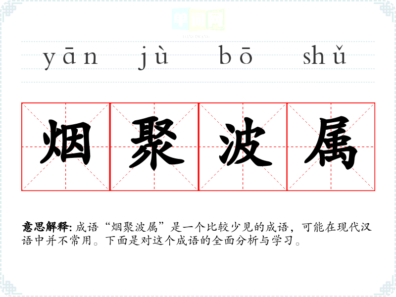 成语“烟聚波属”是一个比较少见的成语,可能在现代汉语中并不常用。下面是对这个成语的全面分析与学*。