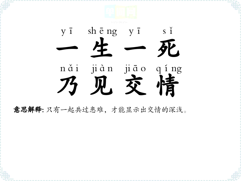 | 一生一死,乃见交情 | 只有一起共过患难,才能显示出交情的深浅。 |