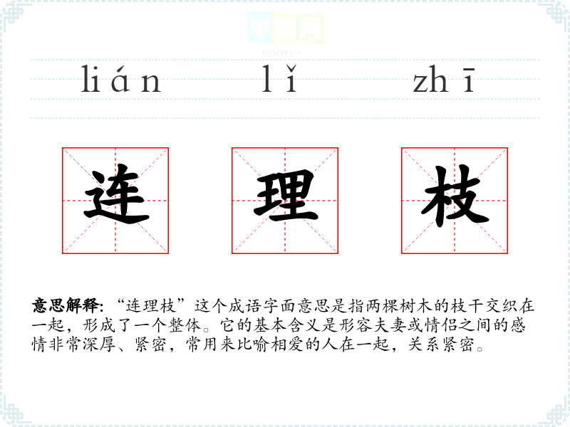 “连理枝”不仅是一个简单的成语,它承载着深厚的情感与文化意义。通过对其的学和理解,我认识到在语言学中,掌握成语不仅有助于丰富表达,还能增强对文化的理解,让交流更具深度和情感。