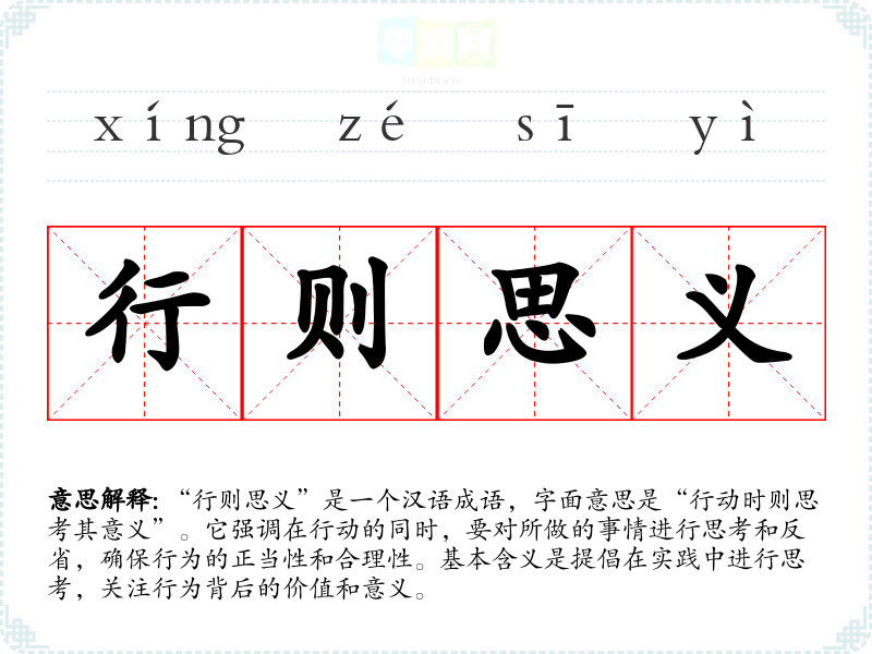 “行则思义”是一个富有智慧的成语,提醒我们在行动中要保持思考的清醒。在语言学习和表达中,理解这一成语不仅能提升我们的思维深度,还能帮助我们在生活中做出更理智的选择,具备更强的道德意识。
