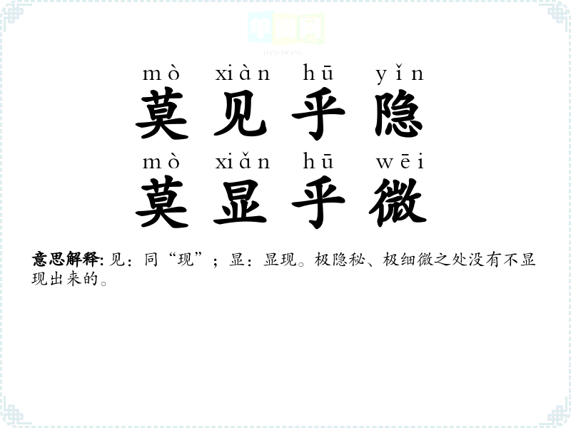 | 莫为已甚 | 不做得太过分。多指对人的责备或责罚适可而止。 |