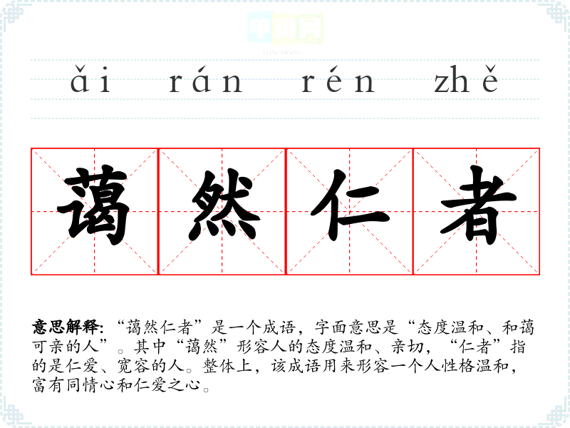 | 蔼然仁者 | 对人和善的有仁德的人。 |