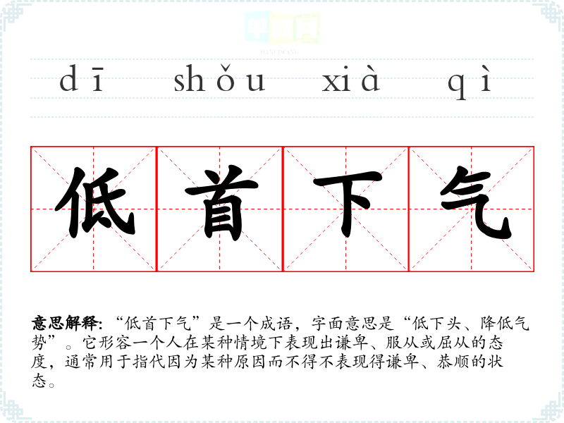 低三下四 形容态度卑贱低下也指工作性质卑贱低下。