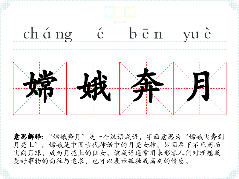 “嫦娥奔月”在**文化中象征着对理想与美好生活的追求,同时也反映了人们对月亮的向往与敬仰。在现代社会,这一成语仍然适用于表达追求理想和目标的情感,具有普遍的适用性。