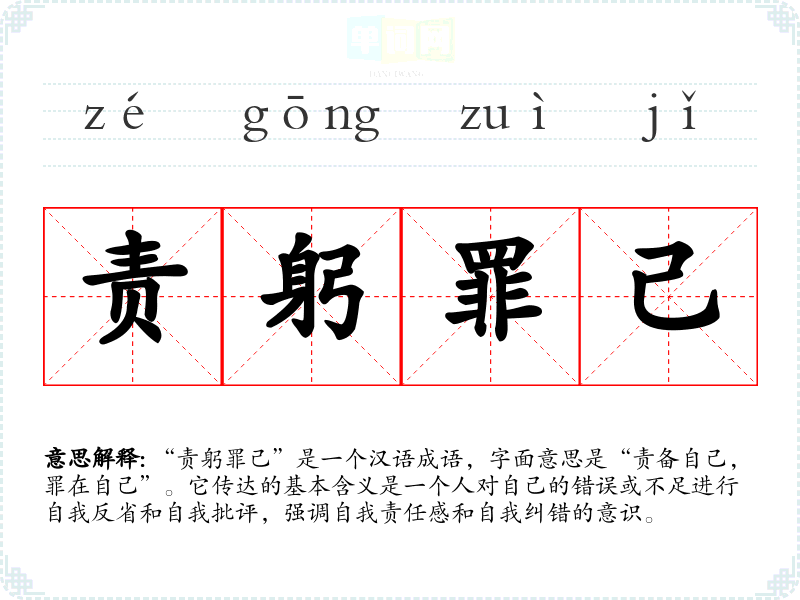 通过对“责躬罪己”的学,我认识到自我反省的重要性。这个成语不仅仅是对自我失败的指责,更是对未来改进的期许。在我的语言学和表达中,理解这个成语的深层含义有助于提升我的思考能力和自我批评意识。