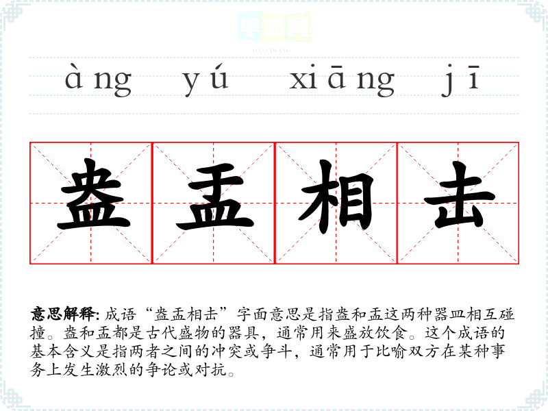 “盎盂相击”源自《左传》中的一句话,描述了两国之间的争斗。这个成语的历史背景反映了古代社会中不同势力之间的角逐和冲突,象征着人与人之间难以避免的摩擦与碰撞。