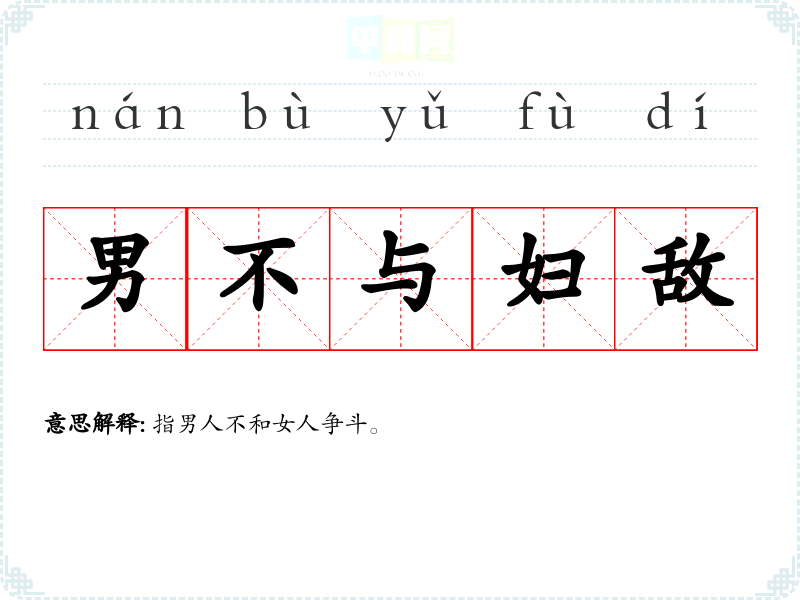 | 男不与妇敌 | 指男人不和女人争斗。 |