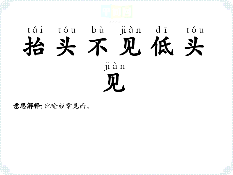 | 一日不见,如隔三秋 | 一天不见,就好像过了三年。形容思念的心情非常迫切。 |
