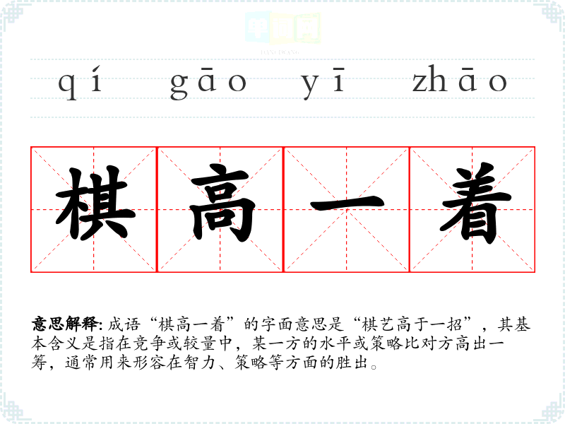 棋高一着 一着:下棋时下一子或走一步。棋艺高人一步。也比喻技高一等。