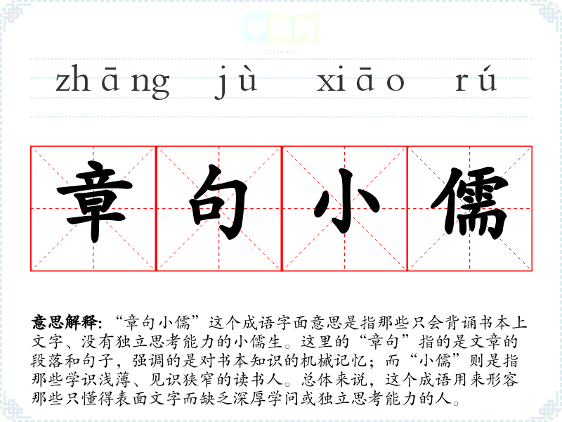 | 章句小儒 | 指不能通达大义而拘泥于辨析章句的儒生。 |