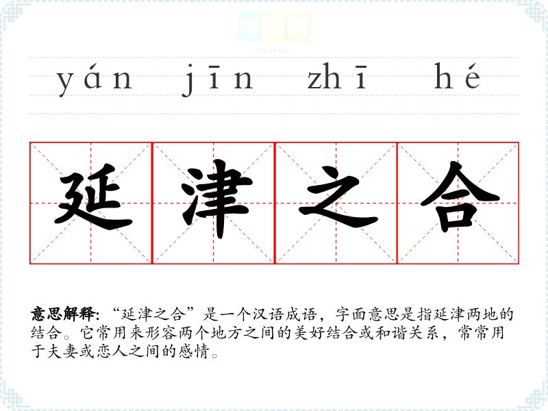 “延津之合”是一个汉语成语,字面意思是指延津两地的结合。它常用来形容两个地方之间的美好结合或和谐关系,常常用于夫妻或恋人之间的感情。
