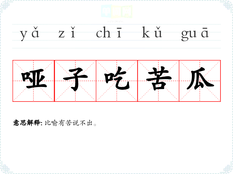 | 哑子吃苦瓜 | 比喻有苦说不出。 |
