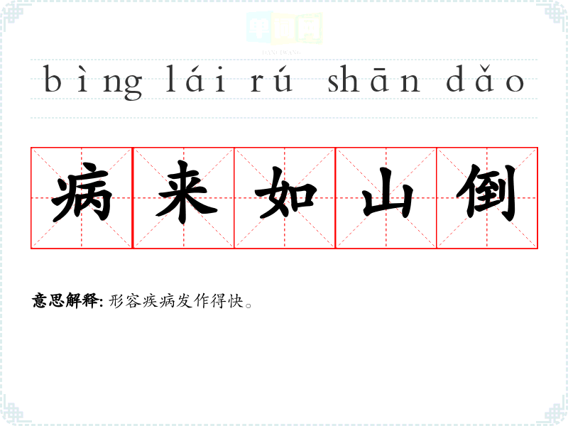 | 病去如抽丝 | 形容病愈很快而且彻底。 |