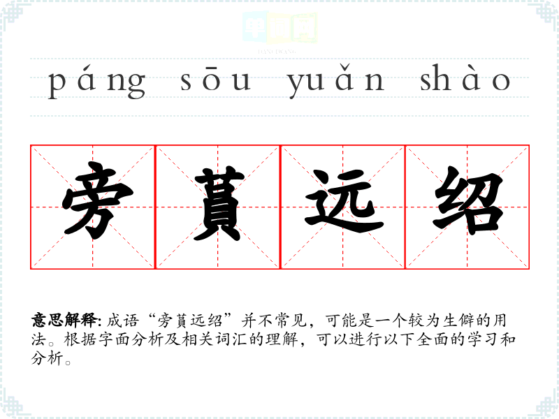 成语“旁蒷远绍”并不常见,可能是一个较为生僻的用法。根据字面分析及相关词汇的理解,可以进行以下全面的学习和分析。