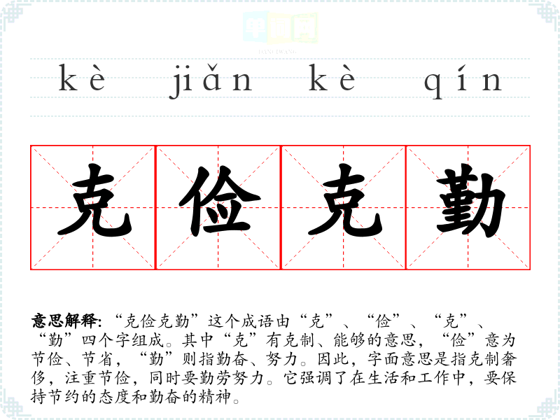 | 克勤克俭 | 克:能够。既能勤劳,又能节俭。 |