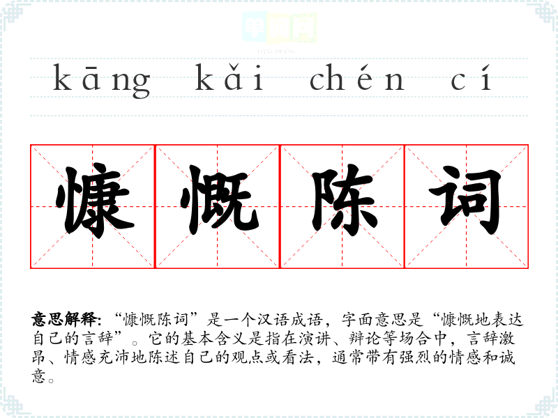 成语分析:慷慨陈词