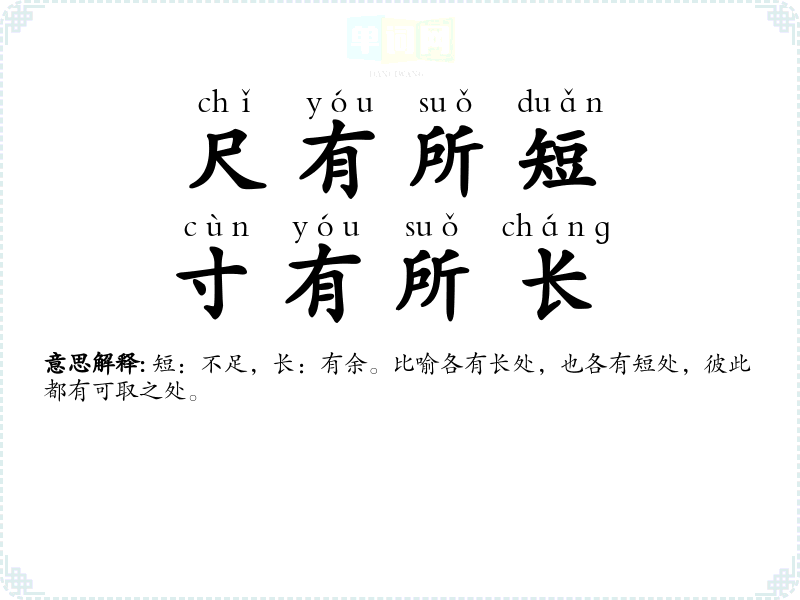| 丈尺权衡 | 衡量事物的轻重长短。 |