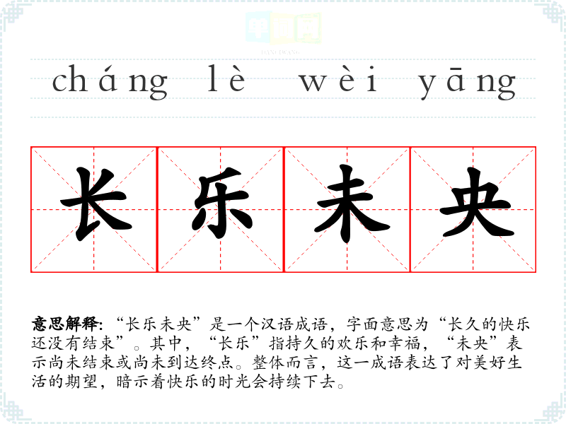 | 长乐未央 | 未央:未尽。长久欢乐,永不结束。 |