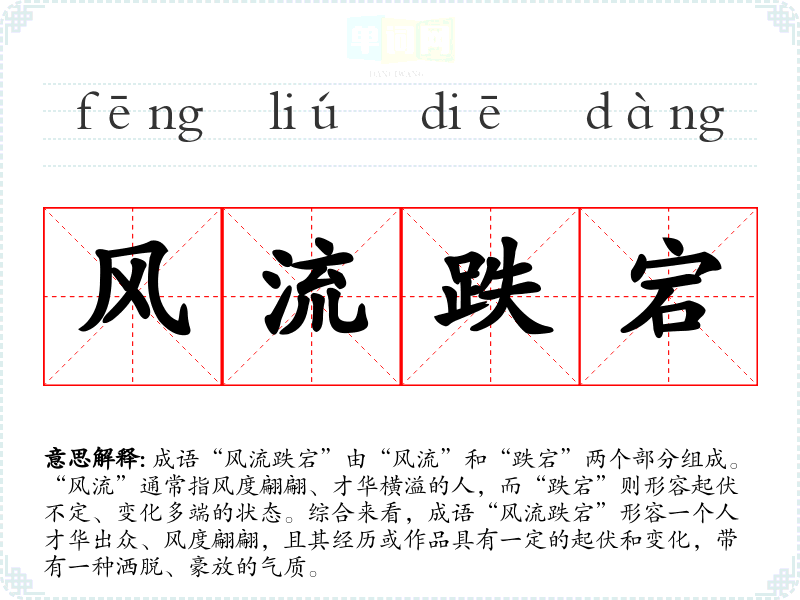 | 跌宕风流 | 潇洒放逸而富有才华风情。 |