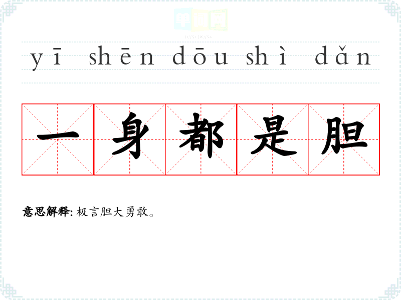 | 一身是胆 | 形容胆量大,无所畏惧。 |