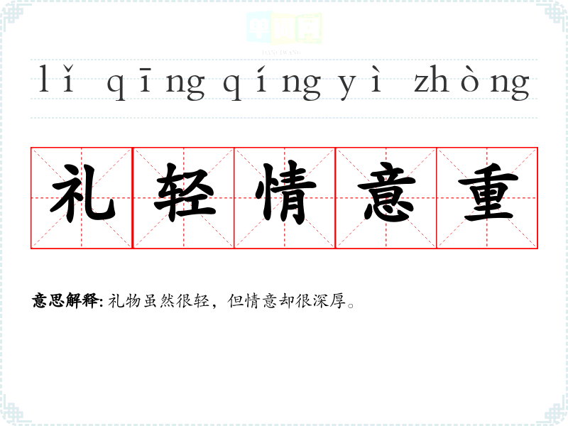 | 礼不嫌菲 | 不因为礼物菲薄而不讲求礼节。 |