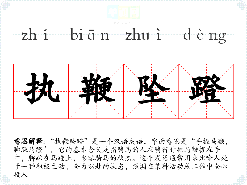 - 无论是工作还是生活,她总是执鞭坠蹬,展现出积极的态度。