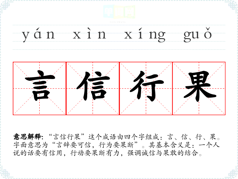 丹青之信 丹:红色;信:确实。红黑二色是不变的颜色。比喻事情已经明了,不可改变。