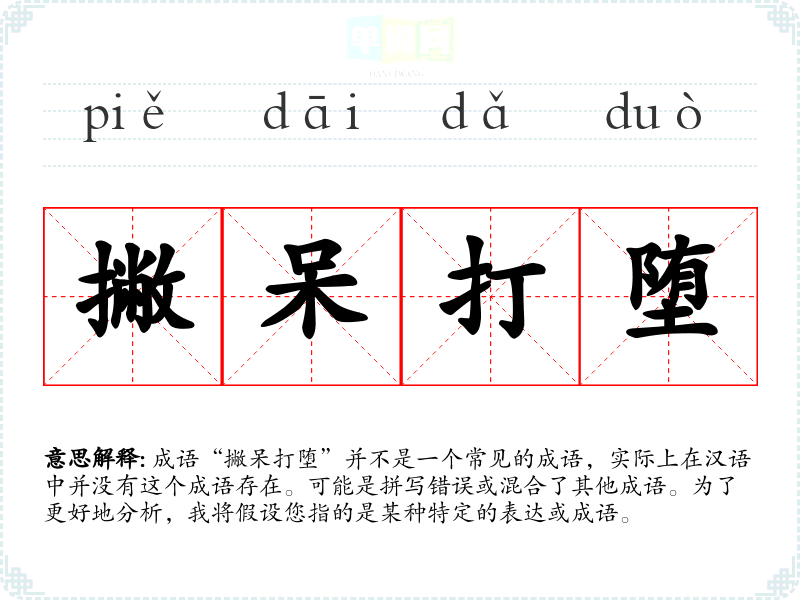 成语“撇呆打堕”并不是一个常见的成语,实际上在汉语中并没有这个成语存在。可能是拼写错误或混合了其他成语。为了更好地分析,我将假设您指的是某种特定的表达或成语。