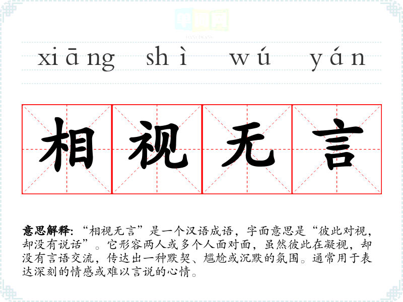 通过对“相视无言”的学,我认识到语言不仅仅是沟通的工具,更多的是情感的载体。这个成语在我的语言学中提醒我关注非言语交流的重要性,以及如何在表达中更好地传达情感。