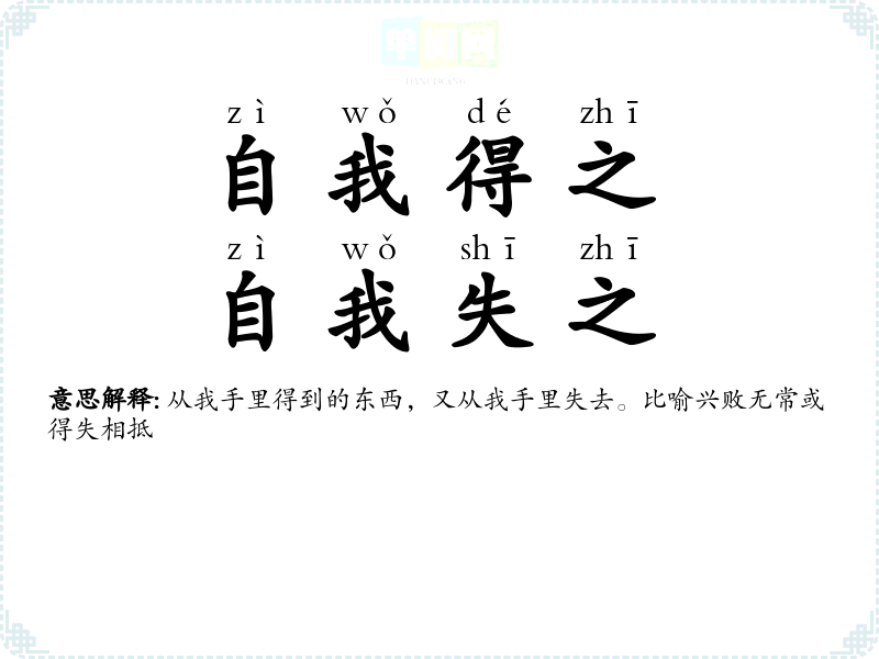 | 自业自得 | 业:造作;得:获得,取得。佛家语,指自作自受。 |