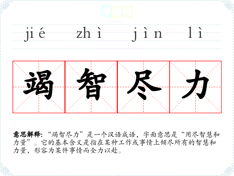 | 竭智尽力 | 用尽智慧和力量。 |