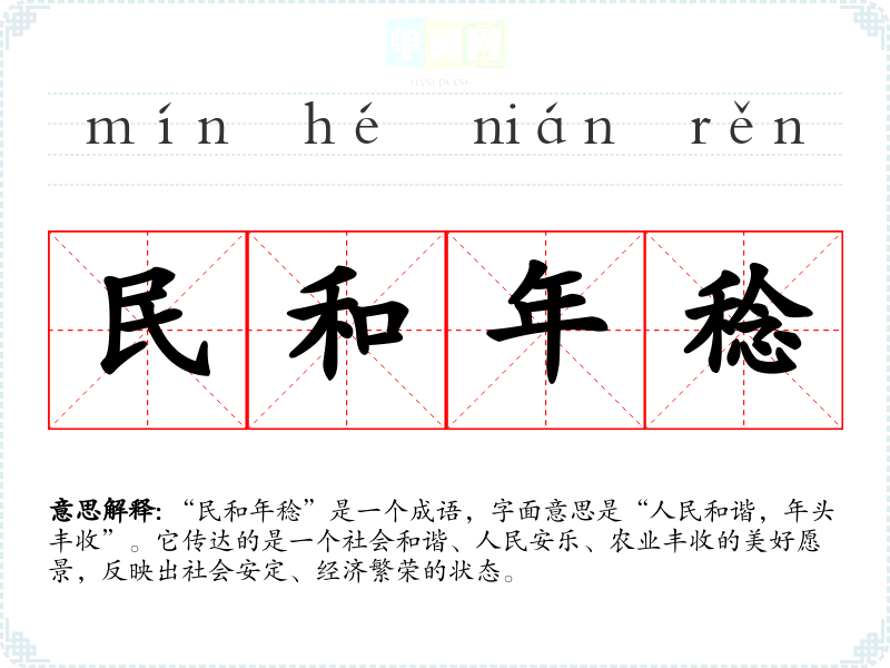 - 在新年的庆祝活动中,大家都希望来年能够“民和年稔”,过上富足安宁的生活。