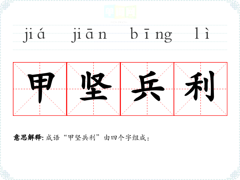 成语“甲坚兵利”由四个字组成: