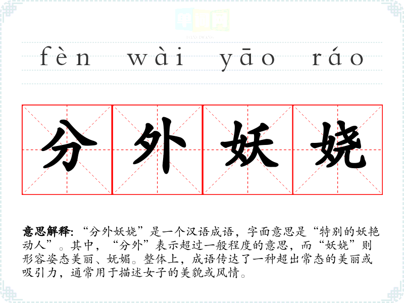- 这些成语同样用于形容女子的美丽,但“分外妖娆”强调了一种超越常规的美感。