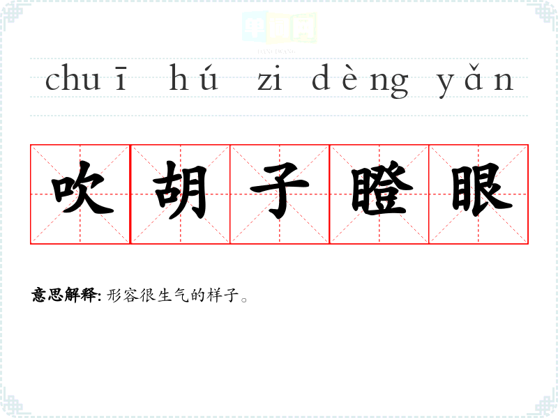 | 吹胡子瞪眼 | 形容很生气的样子。 |