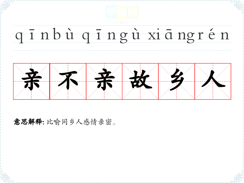 | 亲不亲故乡人 | 比喻同乡人感情亲密。 |