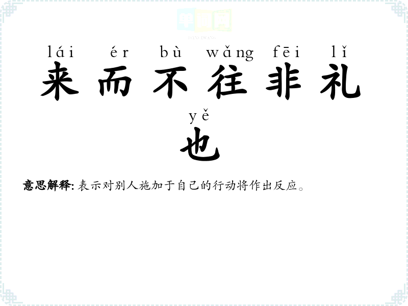 | 来而不往非礼也 | 表示对别人施加于自己的行动将作出反应。 |
