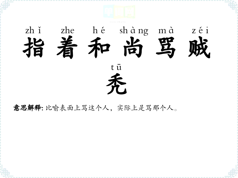 | 对着和尚骂贼秃 | 表面骂第三者,实际是指桑骂槐骂对方。 |