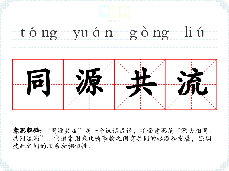 “同源共流”是一个汉语成语,字面意思是“源头相同,共同流淌”。它通常用来比喻事物之间有共同的起源和发展,强调彼此之间的联系和相似性。